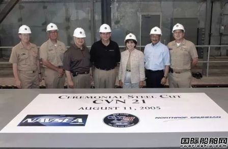 2005年8月11日,CVN21航母首塊鋼板切割儀式。當時的母公司還是諾斯羅普?格魯門,CVN21還沒有被命名為福特級。