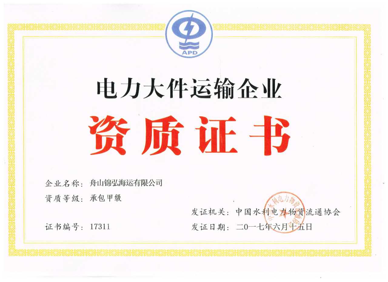 舟山錦弘海運有限公司是專業從事各種核電設備、水電設備、橋梁結構、大型船舶分段、大型船舶主機及各種港機門機等大件設備運輸的海運公司。